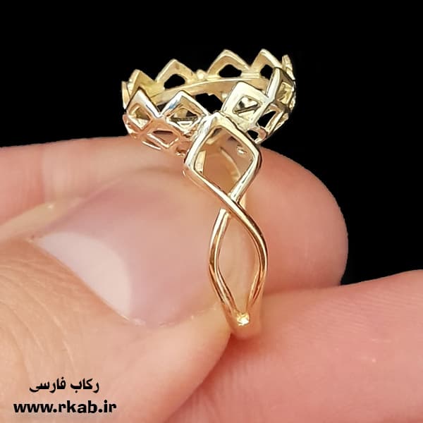 رکاب طلاروس پایه لوزی زنانه با رنگ ثابت و ضدحساسیت فروشگاه رکاب فارسی است. ابعاد سنگ خور رکاب 13 در 12 میلیمتر است. این ابعاد بین بیضی و گرد است که برای ساخت انگشتر زنانه ظرافت خاصی ایجاد می کند. برای نصب گوهر روی این رکاب میتوانید مخراج کاری کنید و چنگ ها را به سمت داخل خم کنید. البته که با چسب هم میتوانید گوهر را فیکس کنید. چسب e8000 گزینه خوبی برای نصب گوهر و نگین روی رکاب انگشتر است.